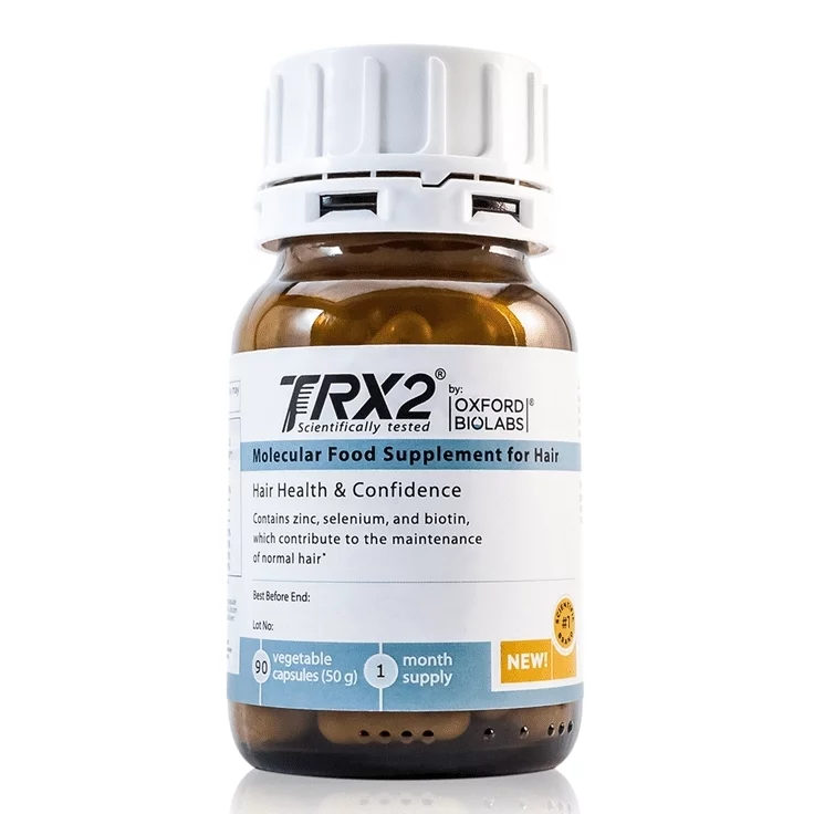 ослідження показали, що люди, які страждають від випадіння волосся мають ослаблені калієві канали. Порушення в калієвих каналах блокують надходження поживних речовин в волосяні фолікули, що призводить до втрати волосся. Так само, як рослина без води, фолікули зменшуються і волосся випадає. TRX2® активує і стимулює калій-іонні канали в волосяних фолікулах, забезпечуючи їх додатковими поживними речовинами для росту волосся. TRX2® – це молекулярна харчова добавка для волосся, яка містить комплекс калію, Carnipure® тартрат (L-карнітин тартрат), BCAA (амінокислоти з розгалуженим ланцюгом), нікотинамід і необхідні поживні речовини. TRX2® використовується для підтримки нормального здорового росту волосся у чоловіків і жінок.