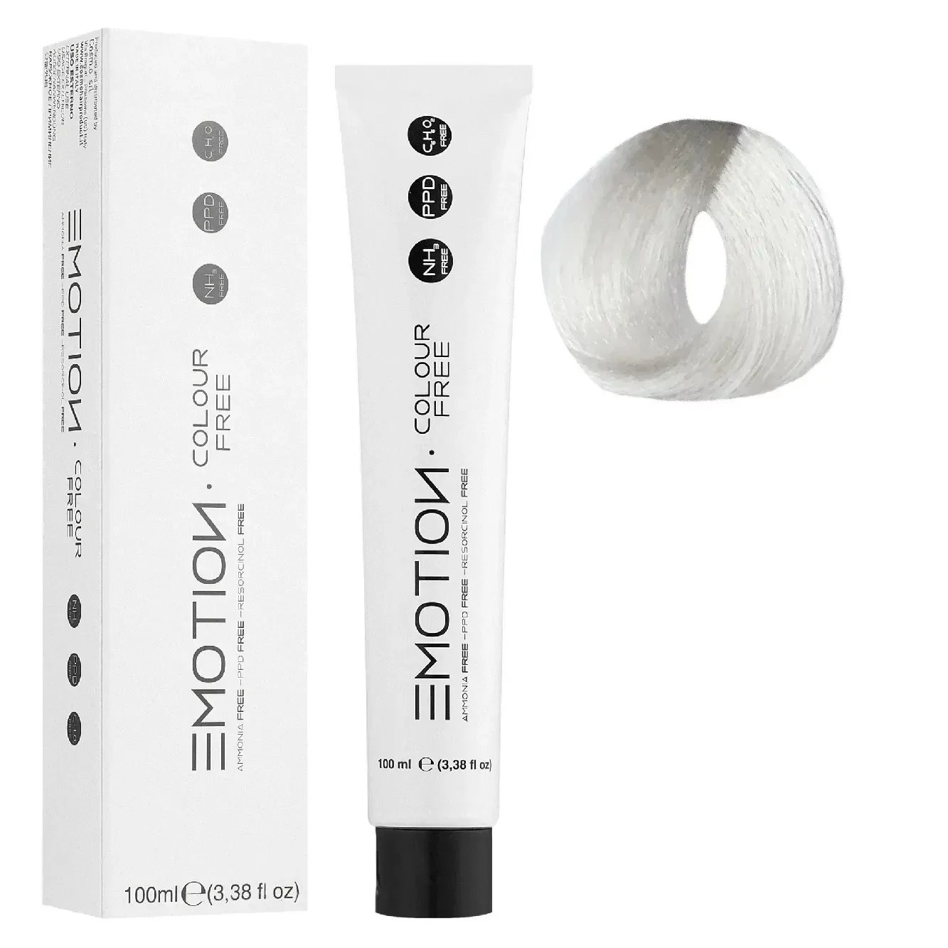 Особенностью EMOTION COLOUR FREE является отсутствие не только  аммиака, а и отсутствие резорцина и PPD, благодаря чему краситель может быть рекомендован для людей, склонных к аллергическим реакциям!