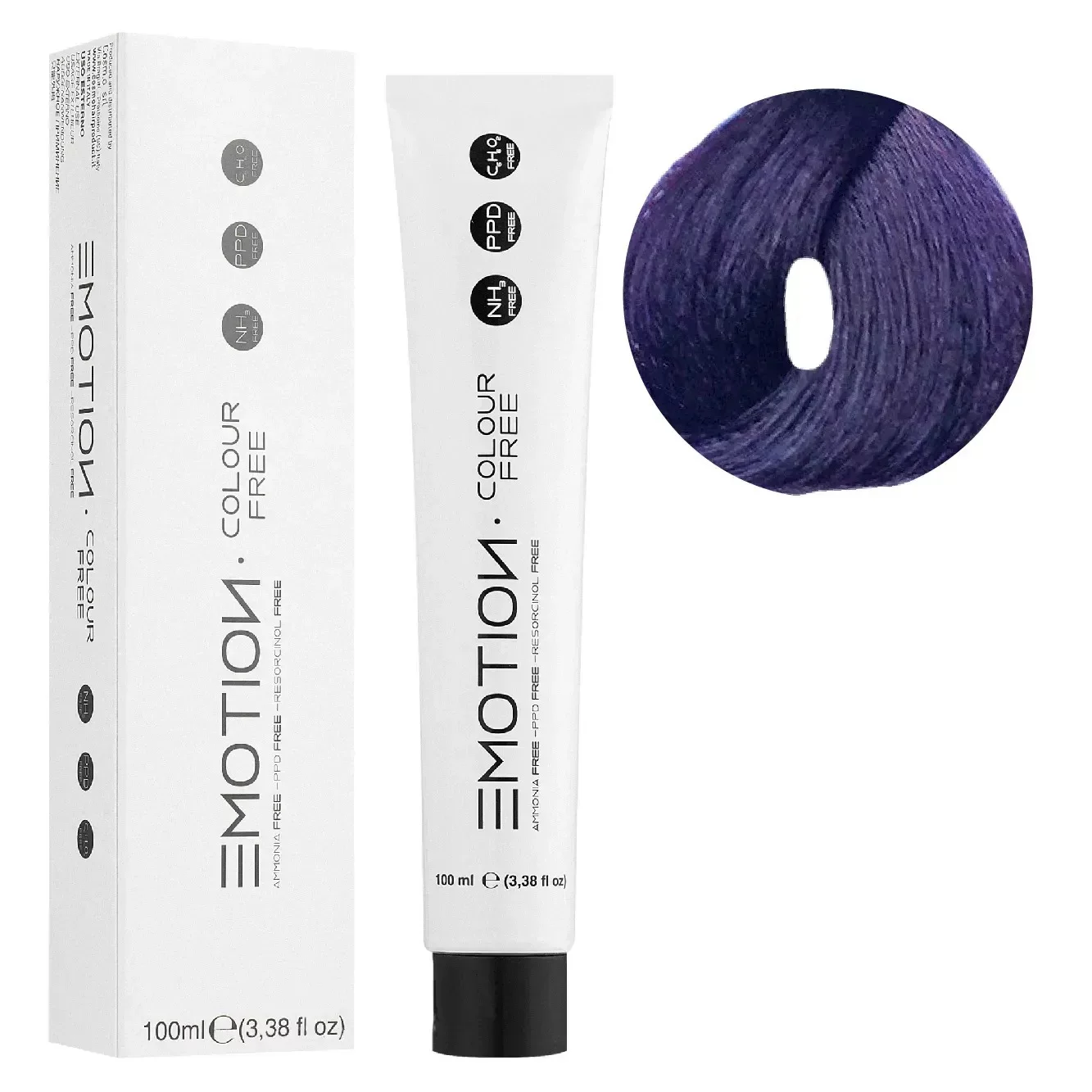 Особенностью EMOTION COLOUR FREE является отсутствие не только  аммиака, а и отсутствие резорцина и PPD, благодаря чему краситель может быть рекомендован для людей, склонных к аллергическим реакциям!