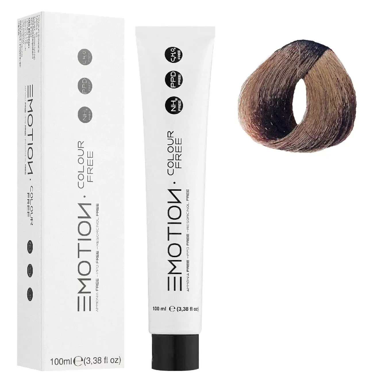 Особенностью EMOTION COLOUR FREE является отсутствие не только  аммиака, а и отсутствие резорцина и PPD, благодаря чему краситель может быть рекомендован для людей, склонных к аллергическим реакциям!