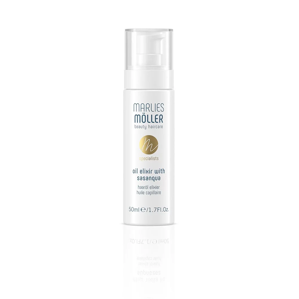 Высокоэффективный эликсир Marlies Moller Oil Elixir with Sasanqua содержит энергию ценных масел (горной камелии и аргановой). Средство обволакивает каждый волос, обеспечивая их питание и увлажнение. Формула эликсира сглаживает стержень волос, дарит поверхности здоровый блеск. Защищает локоны от потери влаги. Не утруждает прическу. Подходит для всех типов. Активные компоненты: масло горной камелии (sasanqua) Органовое масло витамин Е. Применение: Эликсир может применяться для ежедневного использования или в качестве интенсивного курса лечения при необходимости. Наносите продукт на локоны: на увлажненные волосы – для питания, блеска и мягкости как финишное средство – для дополнительного блеска на ночь – для интенсивного питания. Объем: 50 мл