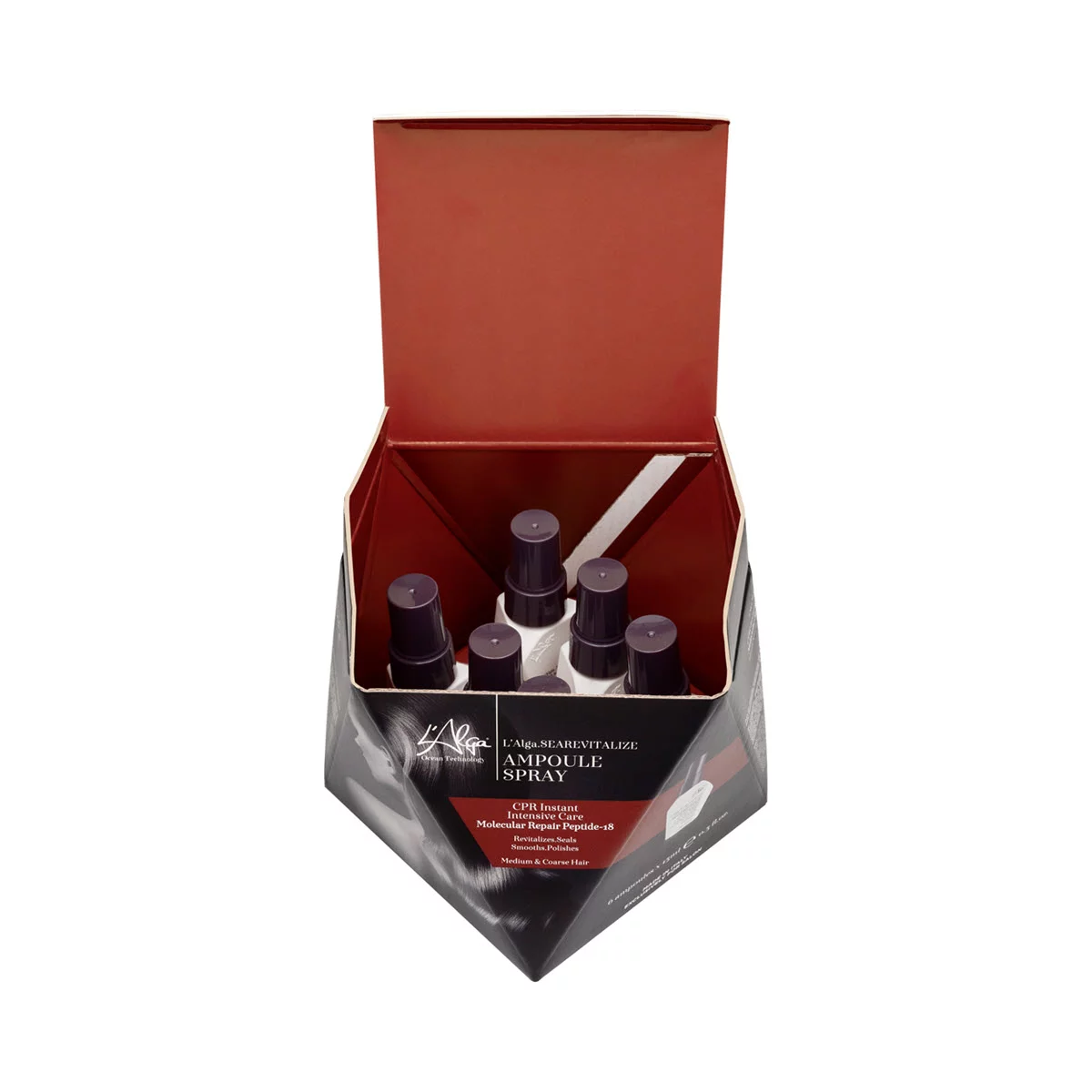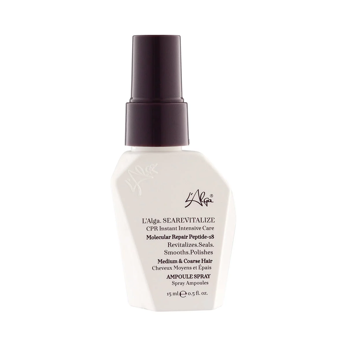 L'Alga.SEAREVITALIZE CPR Instant Intensive Care Molecular Peptide-18 Medium & Coarse Hair Ampoule Spray Высокоинтенсивный уход для восстановления поврежденных волос. Обогащен пептидами, стимулирующими выработку коллагена, запатентованным комплексом AlgaNord5™, гиалуроновой кислотой с влагосвязывающими свойствами, термоактивным кунжутным протеином и активными кондиционирующими веществами. Эта инновационная синергетическая формула образует защитную пленку, которая обволакивает волосы и предотвращает появление секущихся кончиков. Мгновенно придает волосам мягкость, гладкость и блеск. Применение L’Alga SEAREVITALIZE Интенсивный восстановительный спрей-уход для средних волос Перед использованием слегка нагрейте ампулу в теплой воде. Хорошо взболтайте и рассейте на вымытые шампунем волосы секция за секцией. Помассируйте, оставьте на 5-10 минут, тщательно смойте. Используйте спрей-уход при необходимости.