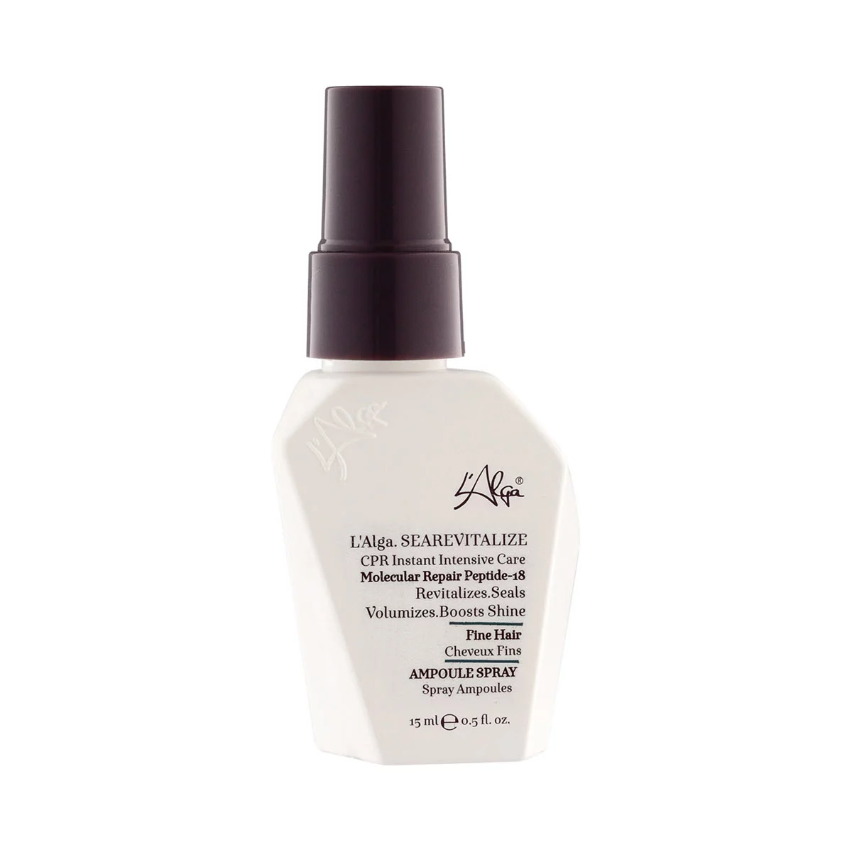 L'Alga.SEAREVITALIZE CPR Instant Intensive Care Molecular Peptide-18 Fine Hair Ampoule Spray Высококонцентрированный невесомый уход для восстановления поврежденных волос. Пептиды стимулируют выработку коллагена, а запатентованный комплекс AlgaNord5™, гиалуроновая кислота, термоактивный кунжутный протеин и кондиционирующие вещества образуют защитную пленку, которая обволакивает волосы, предотвращая появление секущихся кончиков. Эта инновационная синергетическая формула мгновенно ревитализирует волосы, придавая им мягкость, гладкость и блеск без обременения. Состав SEAREVITALIZE Интенсивный восстановительный спрей-уход для тонких волос ALCOHOL DENAT., AQUA (WATER), PROPYLENE GLYCOL, MYRISTYL ALCOHOL, CETRIMONIUM CHLORIDE, HYDROXYPROPYLTRIMONIUM HYDROLYZED CASEIN, PARFUM (FRAGRANCE), SODIUM LAUROYL GLUTAM COPOLYMER (STYRENE/PVP COPOLYMER), HYDROXYCITRONELLAL, CITRONELLOL, ALPHA-ISOMETHYL IONONE, METHYLPARABEN, GLYCERIN, SODIUM DODOXYNOL-40 SULFATE, PROPYLPARABEN, PANTHENOL, SODIUM HYALURONATE, ACETYL HEXAPEPTIDE-1, DEXTRAN, CHDR EXTRACT, HYDROLYZED RHODOPHYCEAE EXTRACT, ALARIA ESCULENTA EXTRACT, PHENOXYETHANOL, HYDROLYZED SESAME PROTEIN PG-PROPYL METHYLSILANEDIOL,PELVETIA CANALICULATA EXTRACT, LAMINARIA DIGITATA EXTRACT, LITHOTHAMNION CALCAREUM EXTRACT (LITHOTHAMNIUM CALCAREUM EXTRACT). Полный и обновленный список ингредиентов рекомендуется смотреть на упаковке продукта. SEAREVITALIZE Интенсивный восстановительный спрей-уход для тонких волос Перед использованием слегка нагрейте ампулу в теплой воде. Хорошо взболтайте и рассейте ее содержимое на вымытые шампунем волосы секция за секцией. Помассируйте, оставьте на 5-10 минут, тщательно смойте. Используйте спрей-уход при необходимости.