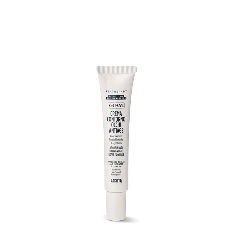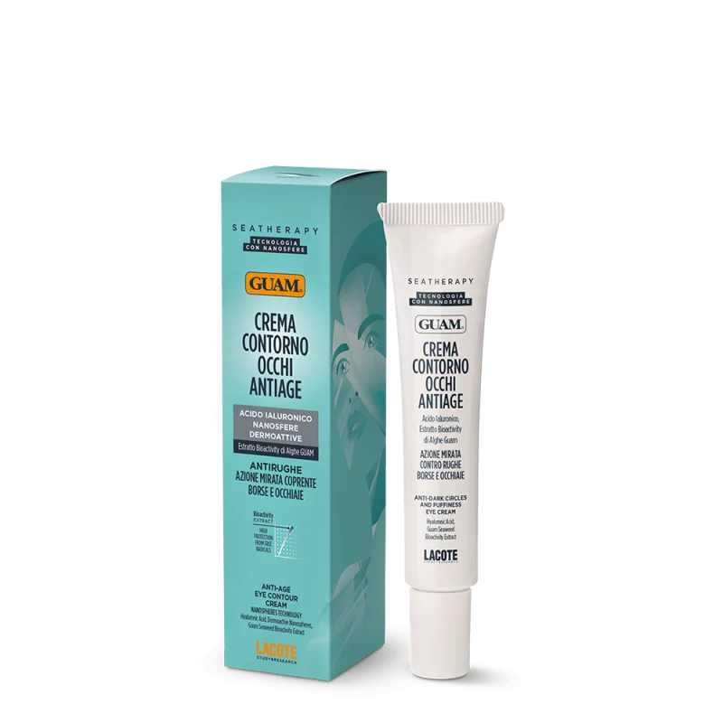 Средство обладает противовозрастным действием и мягкой бархатной текстурой. Содержит гиалуроновую кислоту низкого молекулярного веса, наносферы дермоактивны с противовозрастным действием, которая обеспечивается комплексом пептидов. Эти пептиды оказывают активное действие на реконструкцию клеточного матрикса и на разглаживание морщин. Другие активные компоненты крема – биоактивный экстракт водорослей GUAM, кофеин и комплекс растительных экстрактов – оказывают противоотечный и успокаивающий эффект. Крем обеспечивает увлажнение кожи и обладает мощным антиоксидантным действием. Благодаря едва заметному розовому цвету средства смягчается тусклый цвет темных кругов вокруг глаз. Средство помогает улучшить тонус кожи вокруг глаз, восстанавливает ее естественную яркость. Активные компоненты: Гиалуроновая кислота низкого молекулярного веса, Наносферы Дермоактивные, комплекс пептидов, комплекс растительных экстрактов (экстракт коры сосны, конского каштана и солодки), экстрактыводорослей (экстракт красной водоросли Asparagopsis Armata – улучшает лимфатический дренаж, антиоксидантное действие), кофеин. Наносферы Дермоактивные Наносфера – это инновационная система доставки активных компонентов косметики. Это двухслойные капсулы среднего размера около 200 нанометров, загруженные активным ингредиентом, переносимым таким образом непосредственно на клетки-мишени кожи (кератиноциты, фибробласты). Это происходит благодаря специфическому «лиганду», который выборочно и прицельно прикрепляется только к клеткам, являющимся его конкретной мишенью. Капсулы – наносферы без лиганда вместо этого хаотично взаимодействуют со всеми типами клеток кожи. Благодаря этой технологии можно влиять на необходимые клетки так, как раньше было невозможно – беспрецедентное прицельное и целенаправленное действие позволяет «доставлять» необходимые активные компоненты с их высвобождением. Таким образом насыщение кожи происходит без нее.перегрузки и оптимальных временных промежутках. Гиалуроновая кислота Это натуральное вещество, которое вырабатывается в различных тканях человеческого организма, очень важный компонент кожи, недостаток которого немедленно отражается на состоянии кожи и становится причиной формирования морщин и других неэстетических изменений. В новой линии была использована гидролизованная гиалуроновая кислота, имеющая низкий молекулярный вес. Такая кислота вырабатывается в результате процесса гидролиза. Этот процесс позволяет получить особенно ценную для кожи гиалуроновую кислоту, ценную именно потому, что ее низкая молекулярная масса позволяет ей проникать достаточно глубоко, увлажняя и интенсивно питая кожу, делая ее бархатистой и расслабленной, придавая ей эластичность и мягкость. Биоактивный экстракт водорослей GUAM Противовозрастное действие и профилактика старения кожи средствами линии GUAM Seatherapy усилено благодаря наличию в составе средств Биоактивный экстракт водорослей GUAM.Экстракт получают в результате запатентованного процесса bioliquefazione. Этот процесс является уникальной технологией, которая используется для получения активных ингредиентов растительного происхождения с помощью ферментативного энзимного процесса. Такая технология позволяет извлечь из компонентов растений больше активных веществ