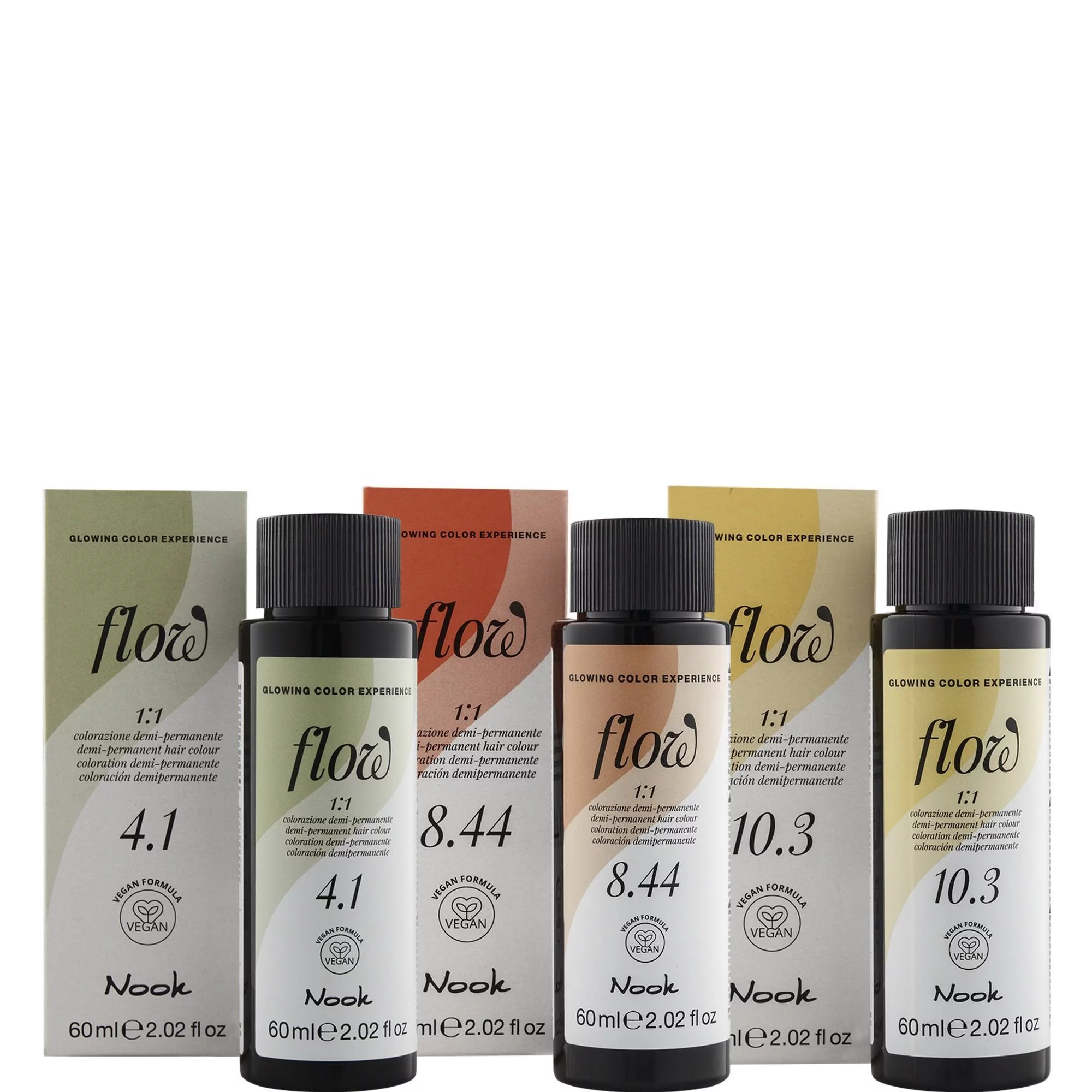 Наденьте одноразовые перчатки, смешайте 1 часть краски Flow и 1 часть активатора Flow (1:1). Нанесите смесь на сухие или влажные волосы, оставьте максимум на 30 минут в зависимости от выбранной процедуры. По истечении времени выдержки произведите эмульгацию с водой до получения мягкой пены. Тщательно смойте. Нанесите шампунь и уход для закрепления цвета линии Nook The Nectar Color, чтобы нормализовать pH волос и продлить результат окрашивания.