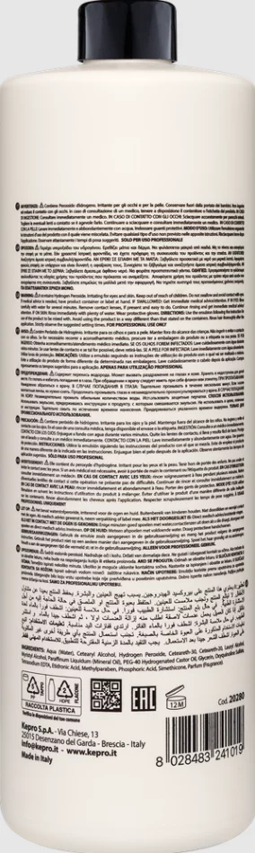 AQUA (WATER), CETEARYL ALCOHOL, HYDROGEN PEROXIDE, CETEARETH-30, CETEARETH-20, LAURYL ALCOHOL, MYRISTYL ALCOHOL, PARAFFINUM LIQUIDUM (MINERAL OIL), PEG-40 HYDROGENATED CASTOR OIL, GLYCERIN, OXYQUINOLINE SULFATE, TETRASODIUM EDTA, ETIDRONIC ACID, METHYLPARABEN, PHOSPHORIC ACID, SIMETHICONE, PARFUM (FRAGRANCE).
