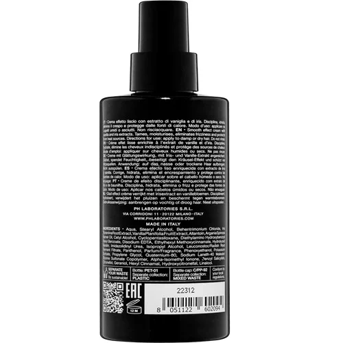 Крем с разглаживающим эффектом. Обогащен экстрактами ванили и ириса. Укрощает и увлажняет волосы, устраняет пушистость и защищает от высоких температур. Активные ингредиенты: - экстракт ириса • из корневища ириса экстрагируют ценные активные ингредиенты, среди которых меристиновая кислота, известная своими косметическими успокаивающими, тонизирующими и защитными свойствами. Дарит волосам блеск и сияние, делает его невероятно мягкими на ощупь. - экстракт ванили • ваниль – растение, принадлежащее к семейству орхидных, родом из Мексики и тропических регионов. Придает волосам блеск, шелковистость и мягкость. Уменьшает пушистость и помогает предотвратить образование секущихся кончиков. Аромат: Верхние нотки • фруктовые • игривый аромат, открывающийся нотками груши, личи и сочными нотками земляники. Средние нотки • цветочные в сердце композиции женственные нотки розы, дополненные нотками кедрового дерева. Базовыенотки • шипровые • базу композиции составляют нотки пачули и кремовой ванили. Применение: нанесите на влажные или сухие волосы. Не смывайте.