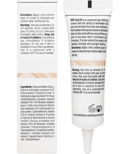 Быстро разглаживает кожу вокруг глаз и придает ей мягкость и шелковистость. Благодаря сочетанию гидролизированных протеинов кунжута и оксидоредуктазы сокращает отечность, корректирует темные круги и морщинки вокруг глаз, предотвращает преждевременное старение кожи вокруг глаз. Silk EyeLift Cream не содержит солнцезащитных фильтров.