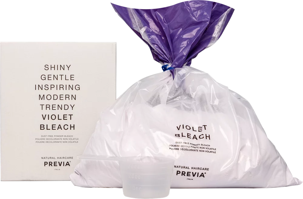 Natural Haircare Previa Violet Bleach Recharge Беспылевая осветительная пудра гарантирует безопасное освещение до 6-7 тонн. Фиолетовая Содержит фиолетовые пигменты, нейтрализующие остаточные желто-оранжевые и желтые пигменты. PLUS Формула со сбалансированным pH Интенсивное быстрое и безопасное освещение Кондиционирующее действие