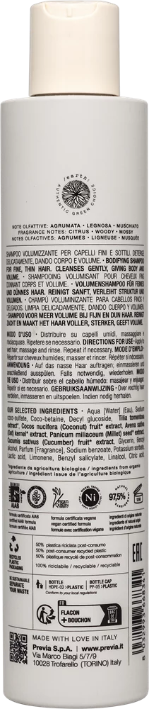Natural Haircare Previa Volumising Bodifying Conditioner Previa TILIA BLOSSOM Кондиционер для объема С органическим экстрактом цветков липы Кондиционирующий уход для придания объему тонким и редким волосам. Действует на поверхности. Придает волосам плотность, силу и объем. Делает волосы мягкими, шелковистыми, объемными и сияющими. СОДЕРЖИТ: - органический экстракт цветков липы. Образует защитную гидролипидную пленку, сохраняет влагу в тканях и выступает в роли защитного барьера для волосяного стержня. Уменьшает пористость, придает волосам блеск и мягкость. - микроэлементы. Микроэлементы кремния, магния, меди, железа и цинка укрепляют структуру волос. Они ускоряют биохимические реакции и способствуют сохранению неустойчивого гидробаланса волосяных тканей. Нотки аромата: ароматные фруктовые нотки, созданные для того, чтобы наполнить ваш день радостью и сделать каждый момент особенным. Удивительный микс: верхние нотки грейпфрута и персика гармонично контрастируют со средними нотками.кедрового и сандалового деревьев.