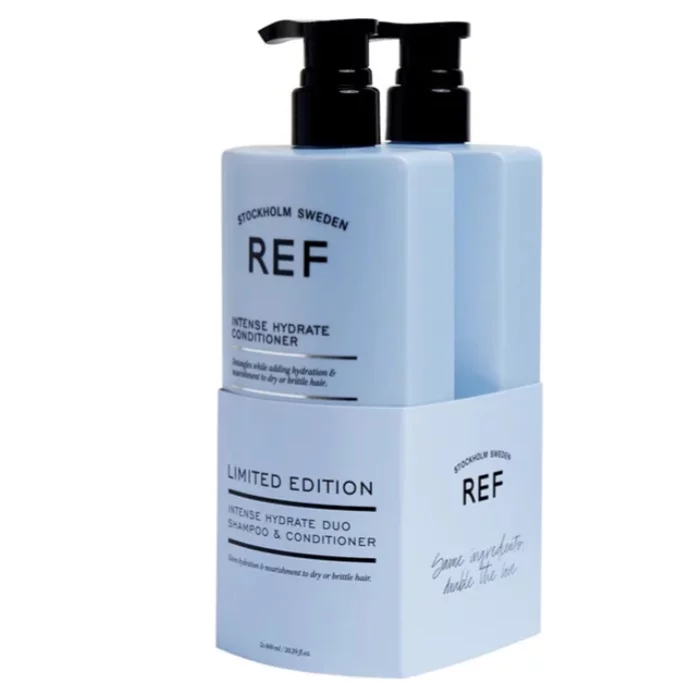 Набор Duo предназначен для интенсивного увлажнения и восстановления гидролипидного баланса, предотвращения обезвоженности и сухости. Средства глубоко увлажняют, питают и защищают волосы. Увлажняющие ингредиенты проникают внутрь волосяного стержня, насыщая его влагой и удерживая ее. Благодаря этому локоны становятся гладкими, мягкими и эластичными. Duo Intense Hydrate дарит естественный блеск, жизненную силу, возвращая упругость и шелковистость ослабленным волосам. Применение: Intense Hydrate Shampoo Нанесите на влажные волосы, вспените и смойте. Затем используйте кондиционер Intense Hydrate Conditioner или другой кондиционер REF по Вашему выбору. Intense Hydrate Conditioner После мытья шампунем Intense Hydrate Shampoo или другим шампунем REF нанесите кондиционер на волосы и оставьте на 1 минуту. Тщательно смойте.