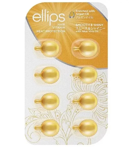 Ellips Hair Vitamin Smooth & Shiny With Aloe Vera Oil Витамины для волос "Роскошное сияние" с маслом Алоэ Вера Если вы хотите иметь здоровые волосы, которые будут радовать желаемой густотой, блеском, мягкостью и шелковистостью, следует уделять особое внимание многим факторам, одним из которых является поступление достаточного количества витаминов и микроэлементов, питательных веществ и влаги. Верный способ сделать это – наладить питание в соответствии с необходимой суточной нормой того или иного вещества. Вместе с этим, можно питать свои волосы извне, применяя витамины в капсулах от популярного бренда Ellips. Средство разработано специально для восстановления волос со временем интенсивного питания и увлажнения. Состав влияет на структуру, даря волосам удивительный блеск, делая локоны мягкими и шелковистыми. Уникальная формула, основанная на чудодейственных свойствах масла алоэ вера и комплекса витаминов, облегчает расчесывание, защищает от губительного воздействия.УФ-излучение. Средство наносится на сухие волосы, не требует смывания. Легкая консистенция обеспечивает способность быстро поглощаться. Способ применения: Отрезать кончик капсулы ножницами и нанести содержимое на чистые, влажные волосы (предварительно подсушить полотенцем). Не требует смывания. Высушить и уложить волосы обычным способом.