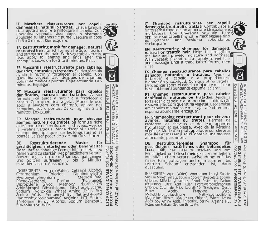 Реструктурирующий шампунь для поврежденных волос. Обогащен растительным кератином, помогает укрепить структуру волос, обеспечивает им увлажнение и придает мягкость. Подходит как для натуральных, так и для химически обработанных волос. pH 5.5-6.0