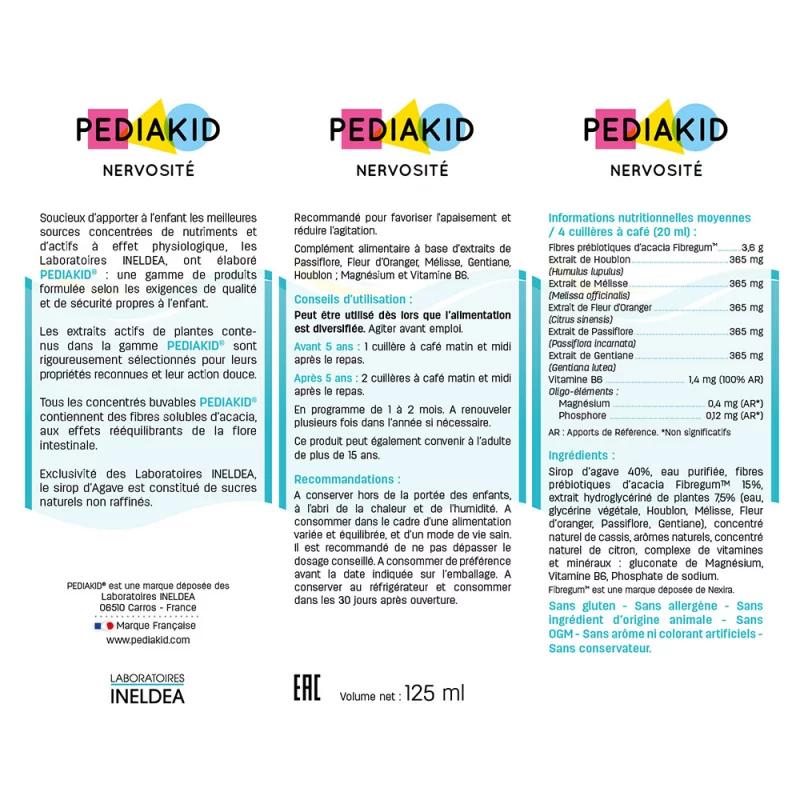 PEDIAKID НАТУРАЛЬНОЕ ПИТЬЕВОЕ СРЕДСТВО ДЛЯ СНЯТИЯ ПОВЫШЕННОЙ ВОЗБУДИМОСТИ И НЕРВОЗНОСТИ / NERVOSITE, 125 мл