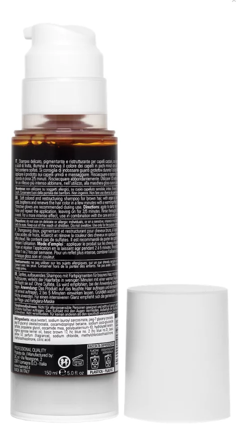 Деликатная формула без сульфатов обновляет цвет и усиливает его яркость всего за несколько минут. Тонирующий шампунь B44 с моющей основой ECOCERT обеспечивает эудермическое очищение волос с сохранением существующего цвета, поскольку в его состав входит калиброванная смесь пигментов с естественным эффектом. Обогащен гидролизованным кератином, аргановым маслом и фруктовыми кислотами, укрепляет волосы и придает им блеск.