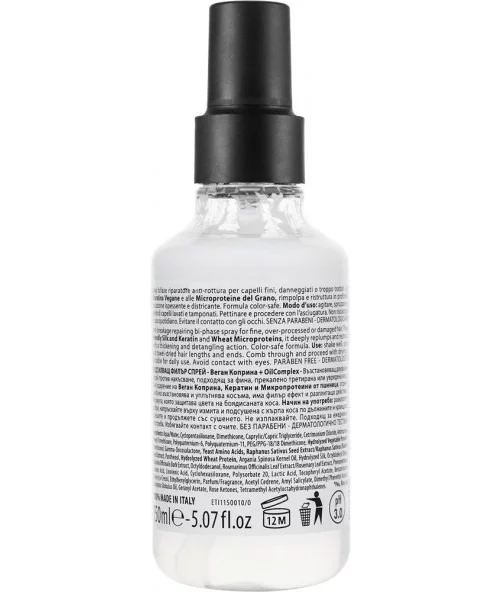 Barex Olioseta Filler Re-Charge Spray — легкий двухфазный спрей с интенсивным восстанавливающим действием, созданный для ухода за тонкими, поврежденными или химически обработанными волосами.